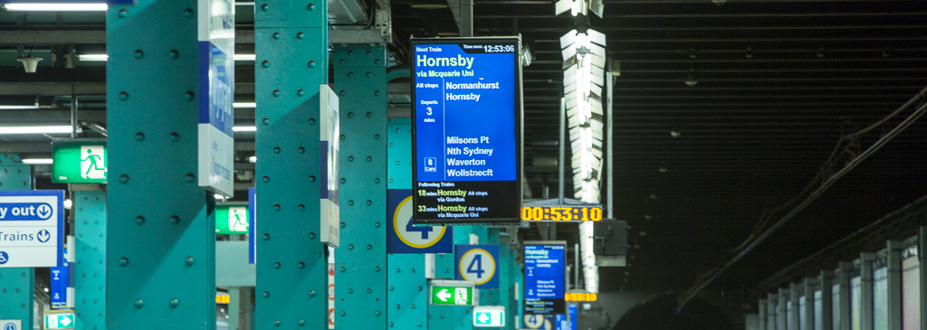 The train stations here are major gathering places.  They have dry cleaners, grocery stores, fast food restaurants all inside the station.  People are always coming and going through the stations here.  It’s never a dull moment.  I had about a 15 minute wait at the downtown train station to come home. I brought the long telephoto lens as I was expecting to photograph the opera house from a distance. I started photographing the sign listing each of the departures to get a better sense of depth of field with this lens. At f/2.8 the depth of field is quite narrow. Not sure what depth of field is?  Look at the yellow digital clock in the two photos.