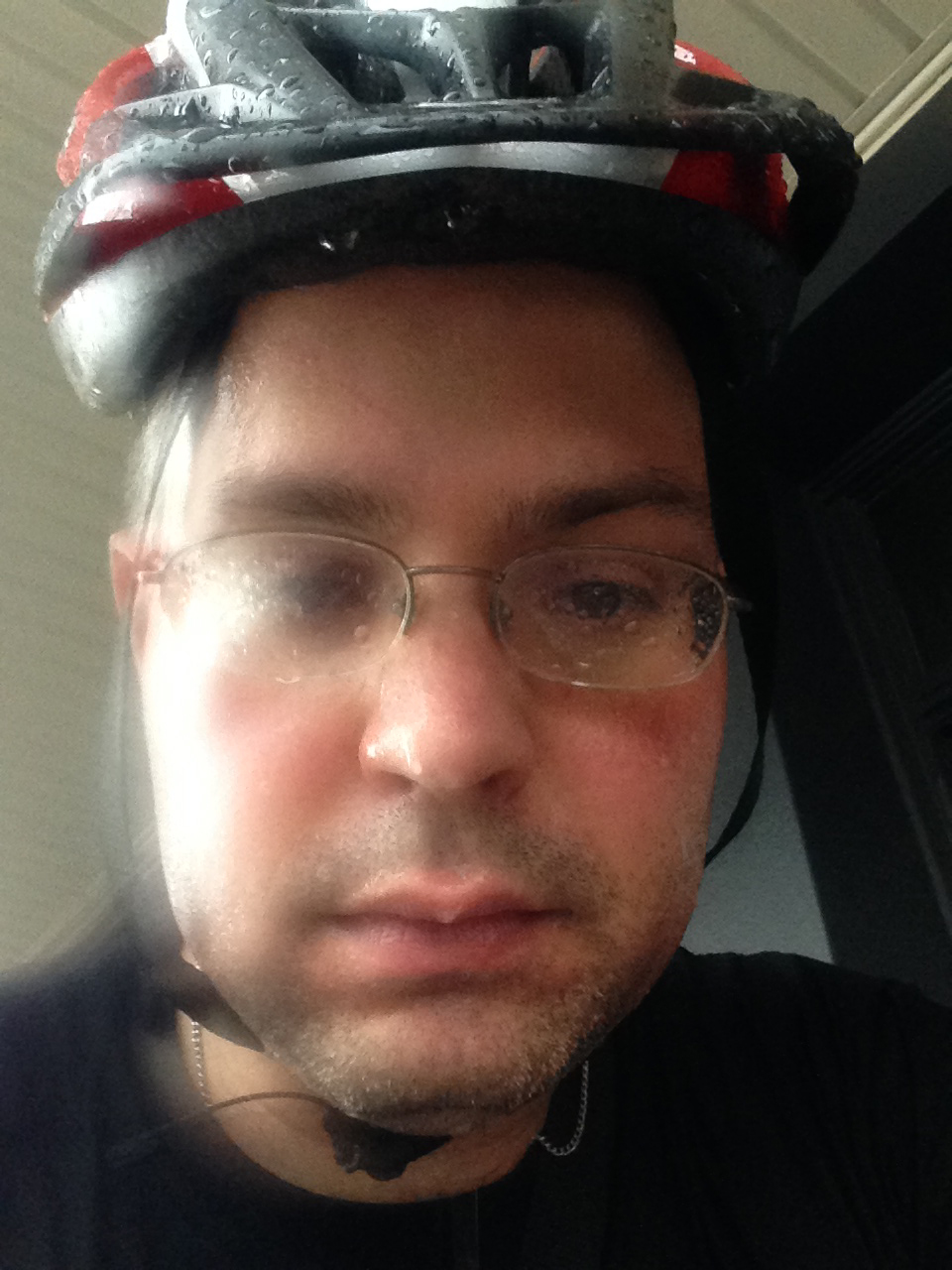 Once I got to Central, it was clear I was wrong about the weather.  A warm wind was encircling the street letting everyone know that weather was coming.  The sweet smell of rain filled the air.  Drops of rain began to fall.  The thunder rolled and I picked up the pace to try to beat the storm.  With the first flash of lightning the skies opened up and I was soaked.  There was no escaping this one.  It was pouring rain and I was kilometers from home.   Lightning was in the air as well and being on a metal bike didn’t help either.